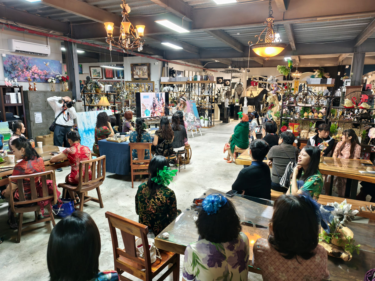 藉由這場聚會,我們不僅分享了旗袍的歷史與藝術家的畫作,也實際換上旗袍感受它的剪裁與造型,