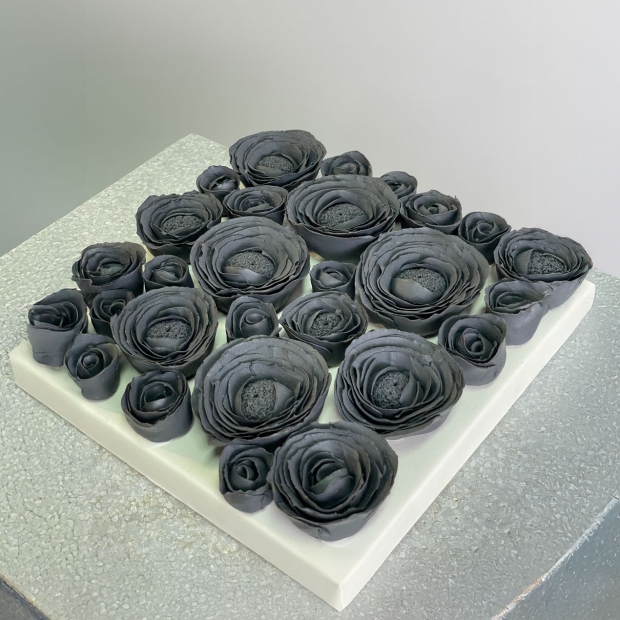 用黑與白意象表達花朵與葉的蜷縮與綻放,
