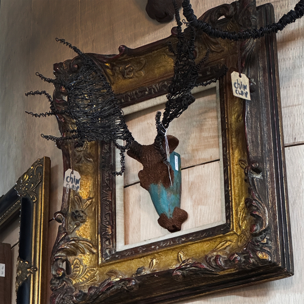 幾年來,Chin Clay一直在創造手工製作的動物和人物,從黏土,木材和其他發現的材料。