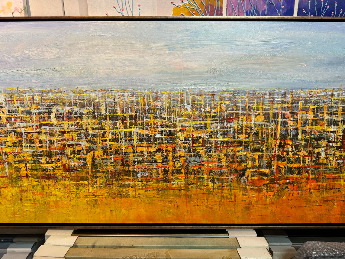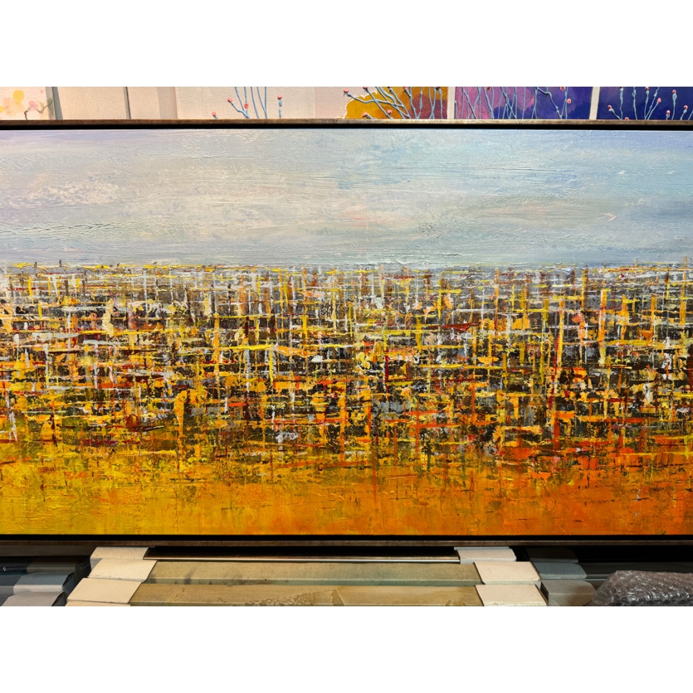 視覺上讓人有編織與堆疊的模樣,是一幅閃亮與繽紛的畫。