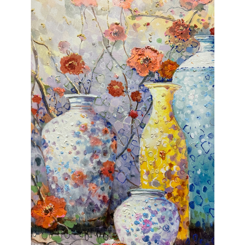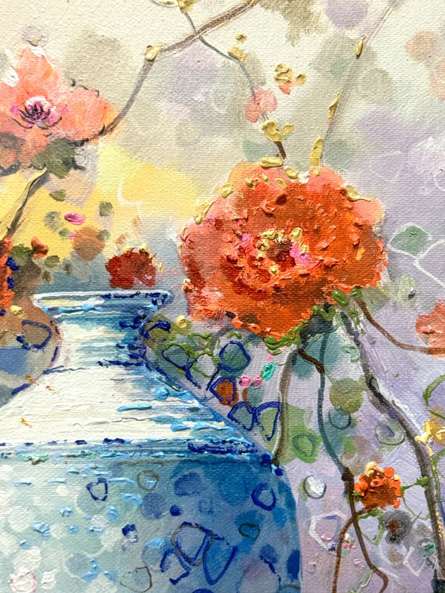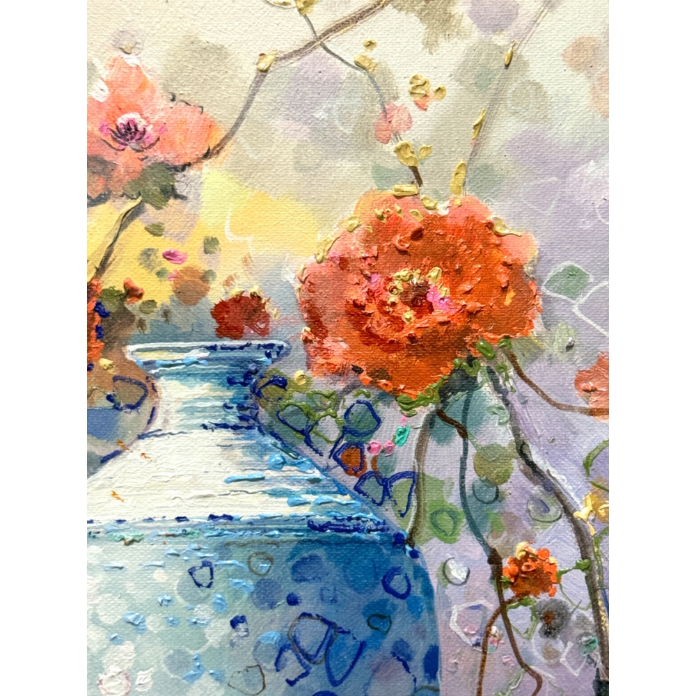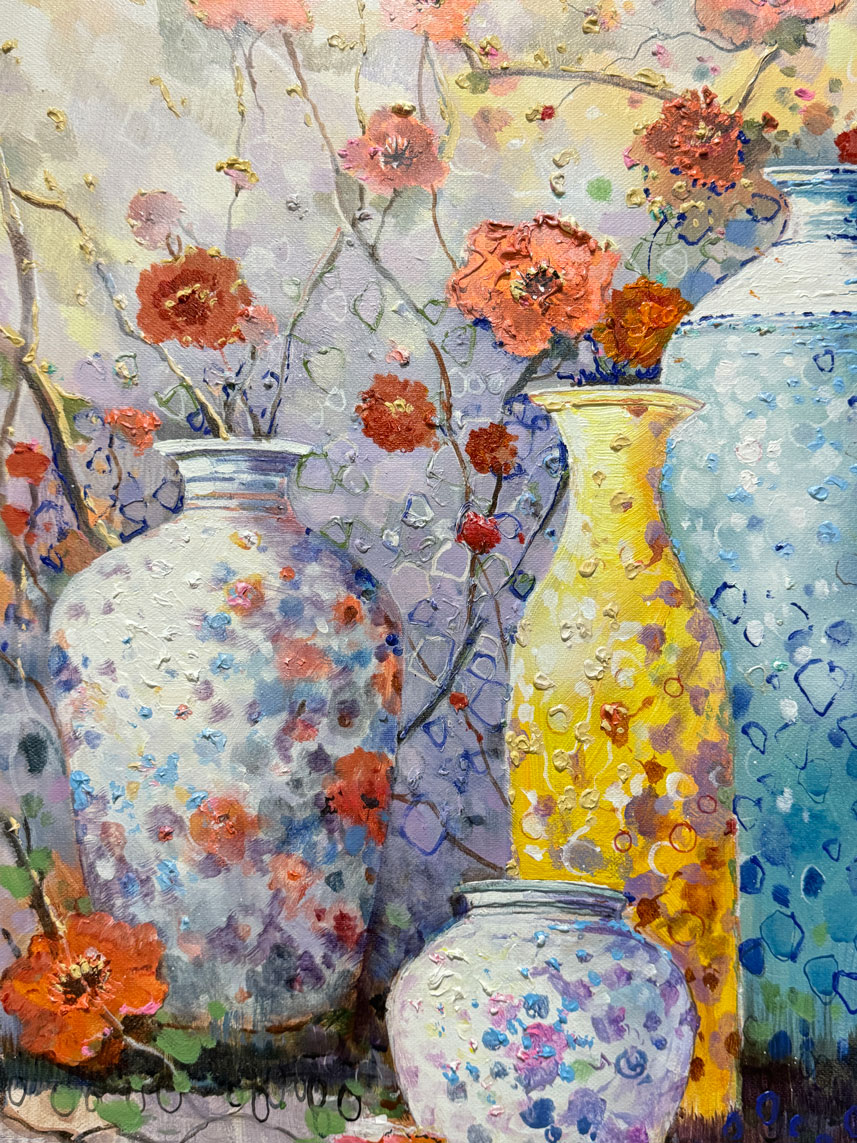 淡雅與明亮兼具的瓶花畫作呈現於大家眼前。