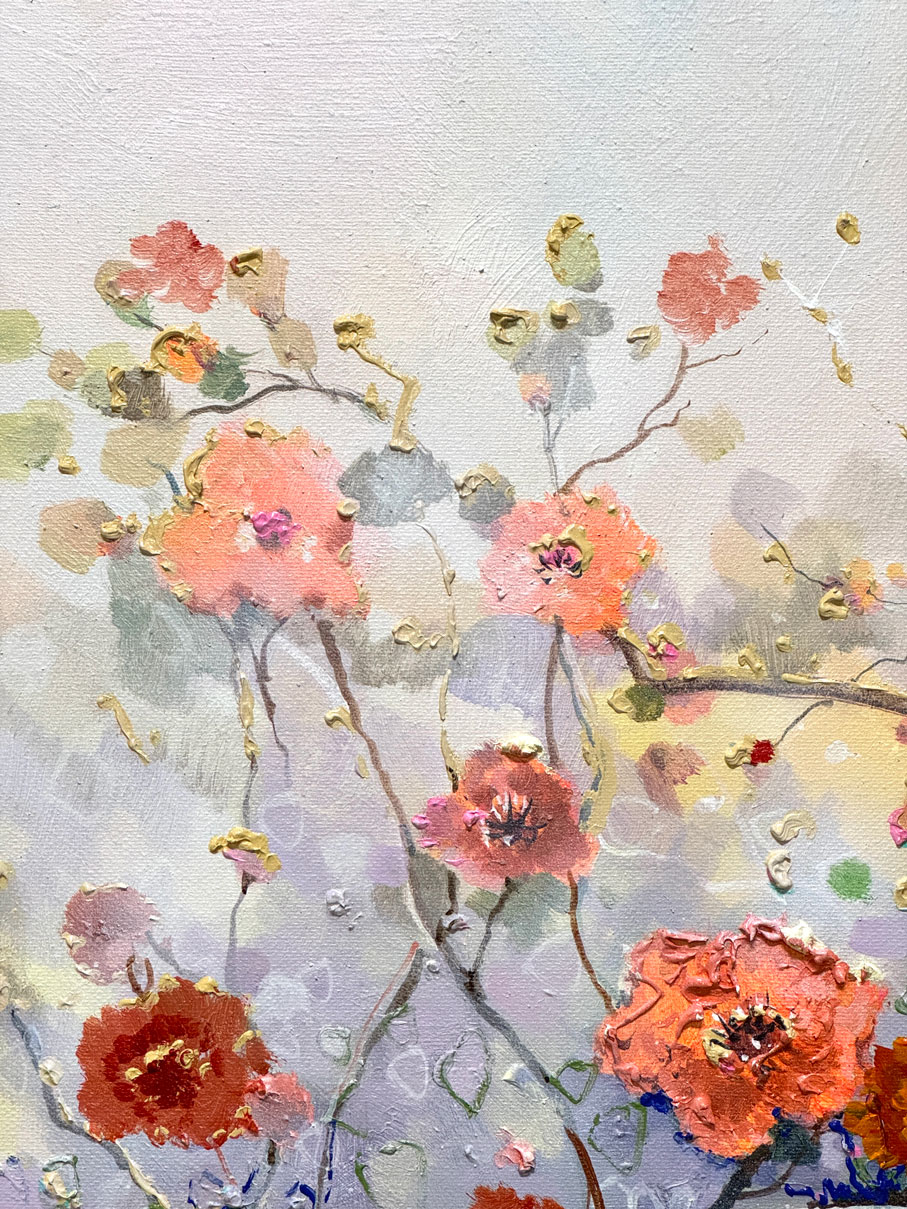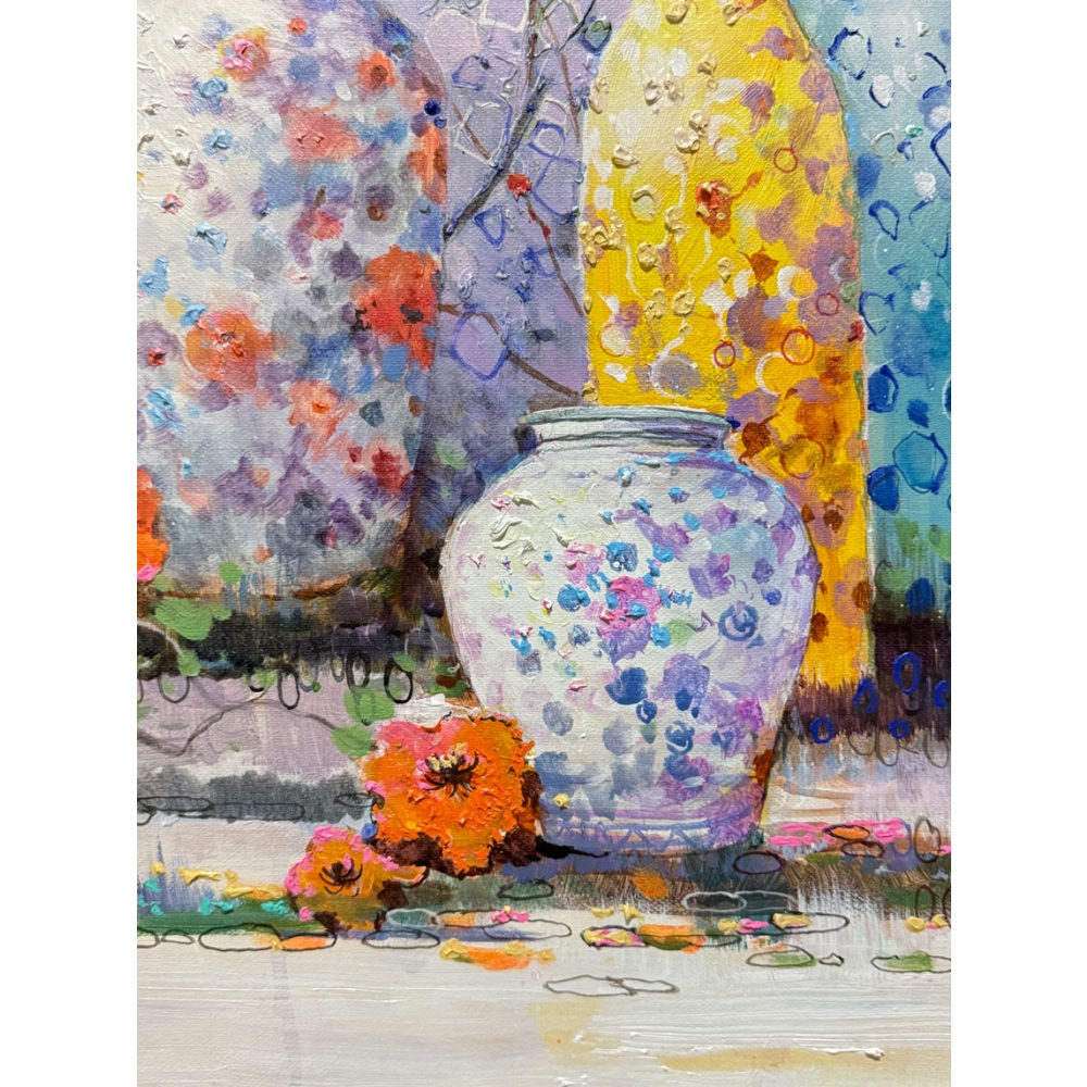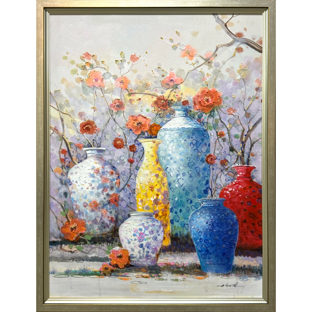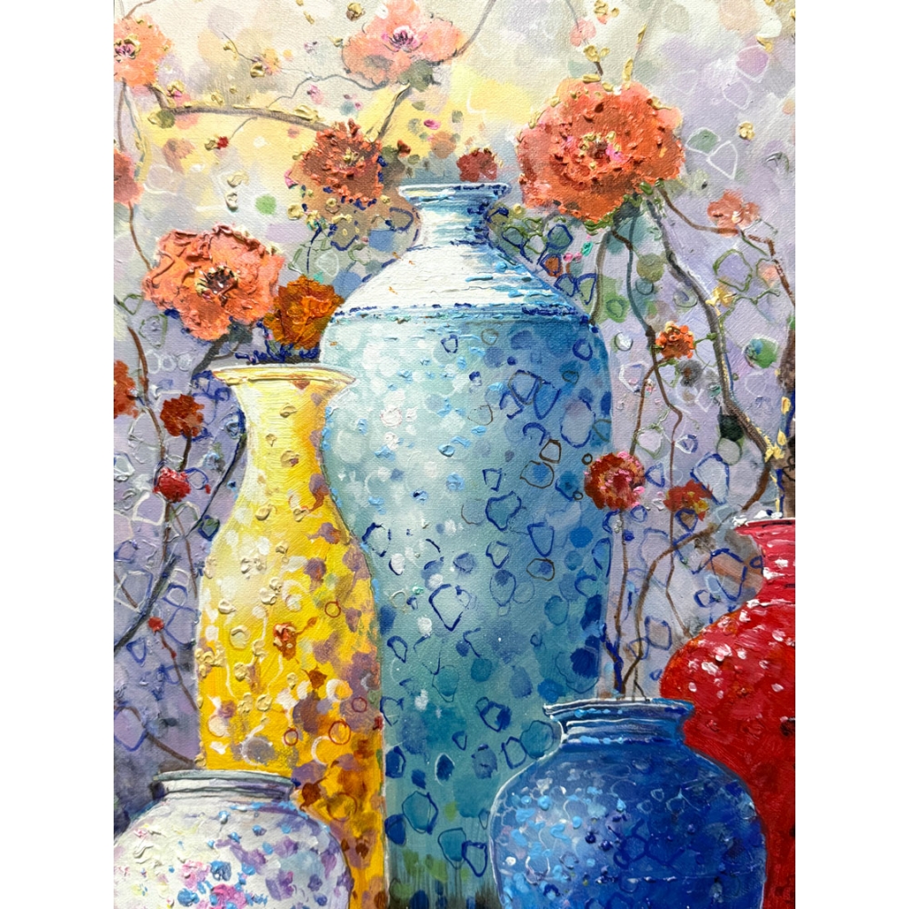 淡雅與明亮兼具的瓶花畫作呈現於大家眼前。