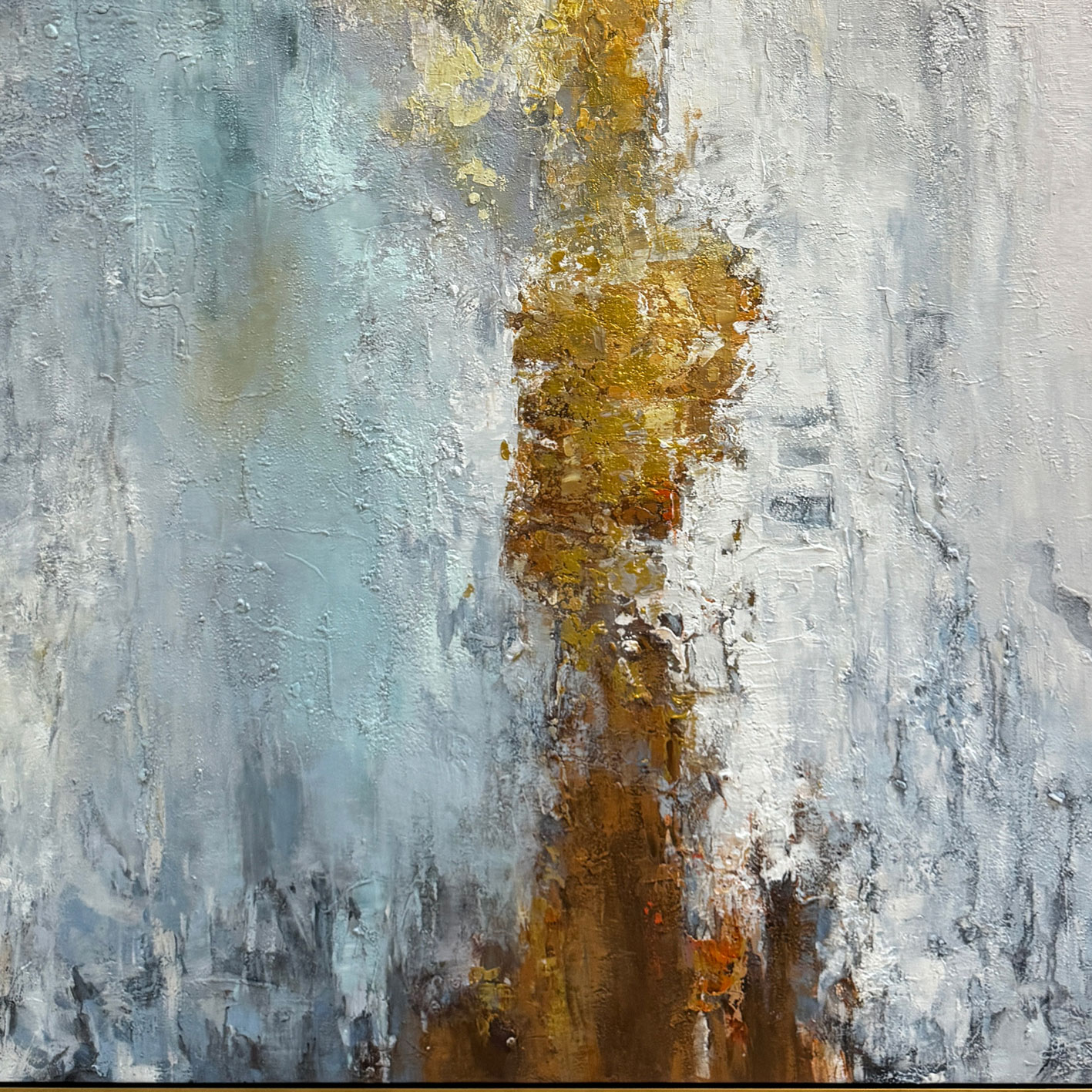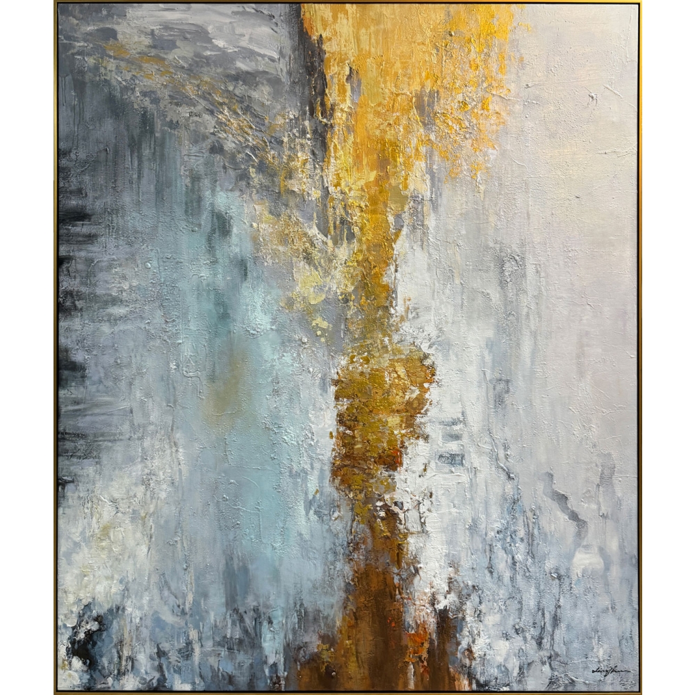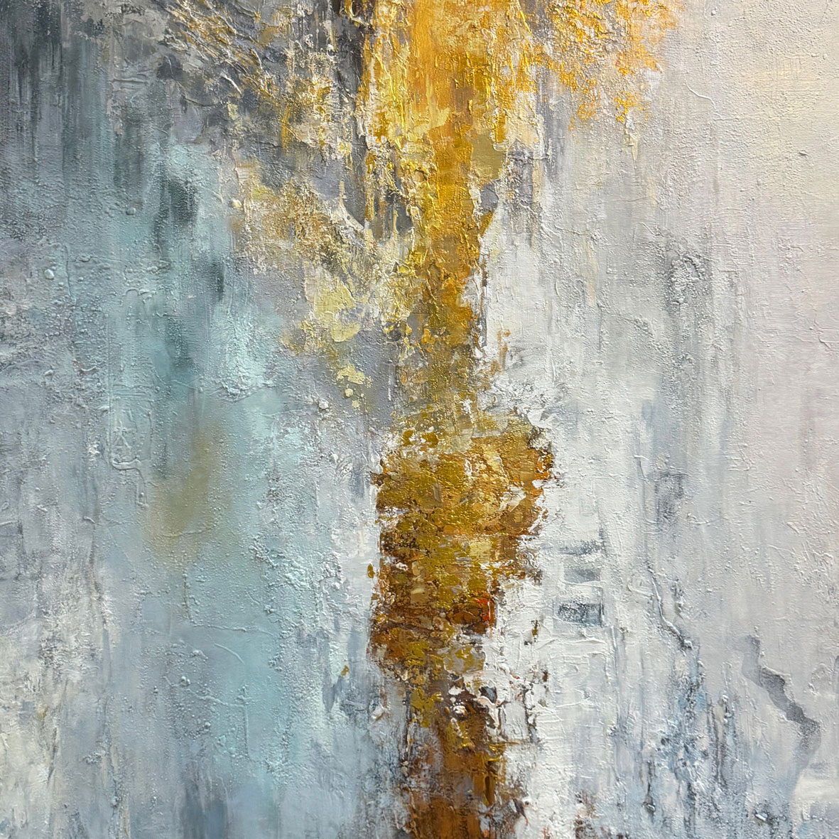 彷彿金色的瀑布由上而下沖刷,形成一氣呵成的畫作,冷色的背景使這金色顯得更加亮眼與吸睛。