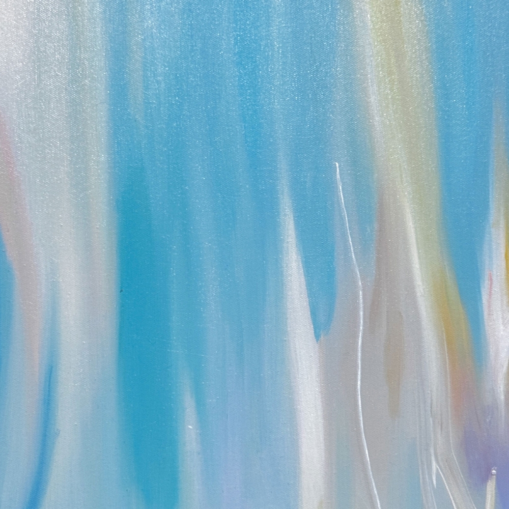 輕盈的藍、白、黃、粉和紫,像是一束又一束的光在向上擺動