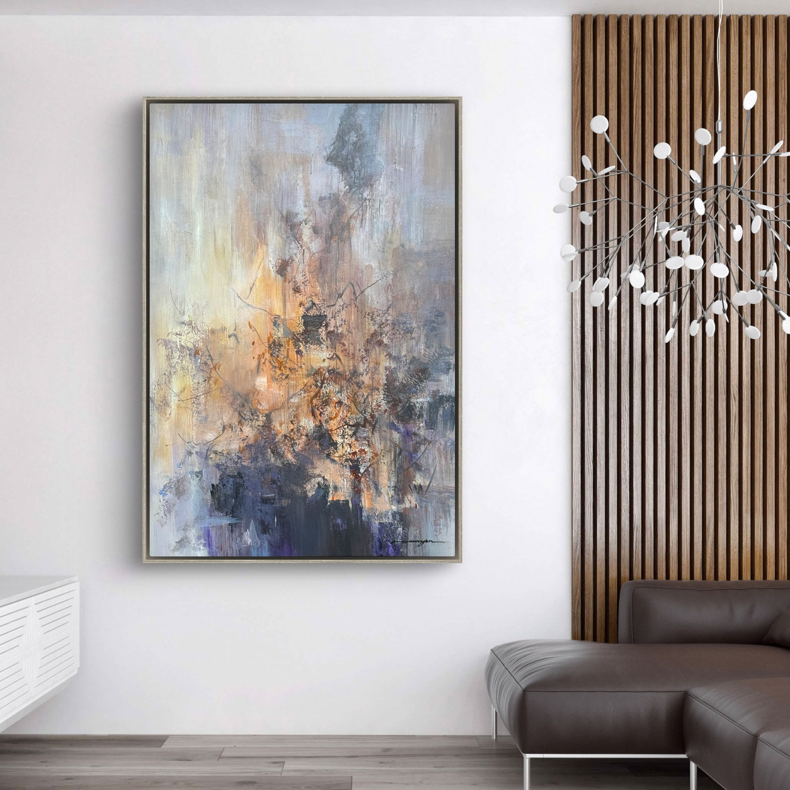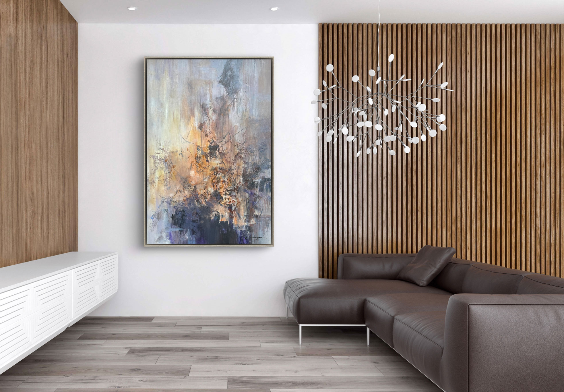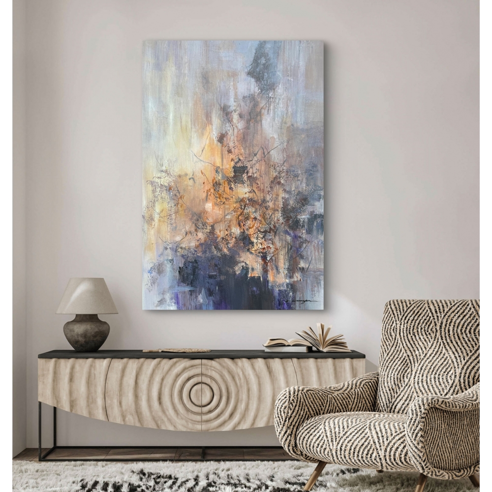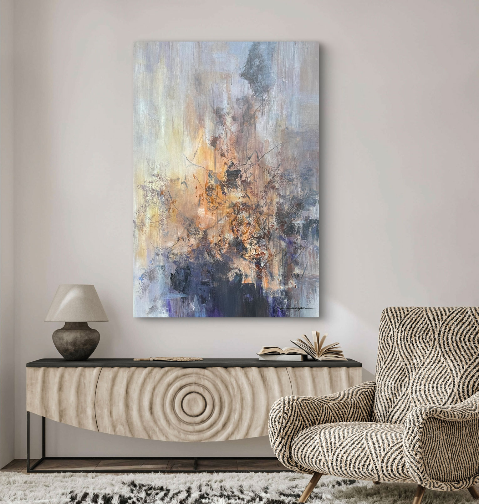 色彩多元融合了灰藍、薰衣草紫、煙燻橙、優雅白與煤炭黑等色彩創造出畫的層次。