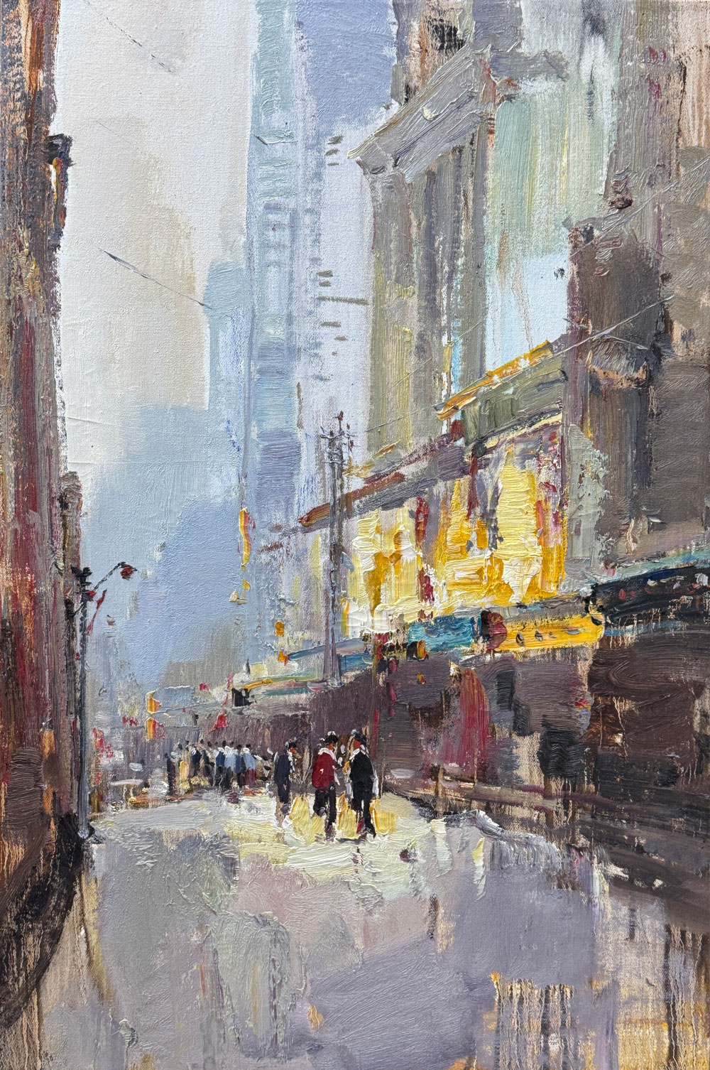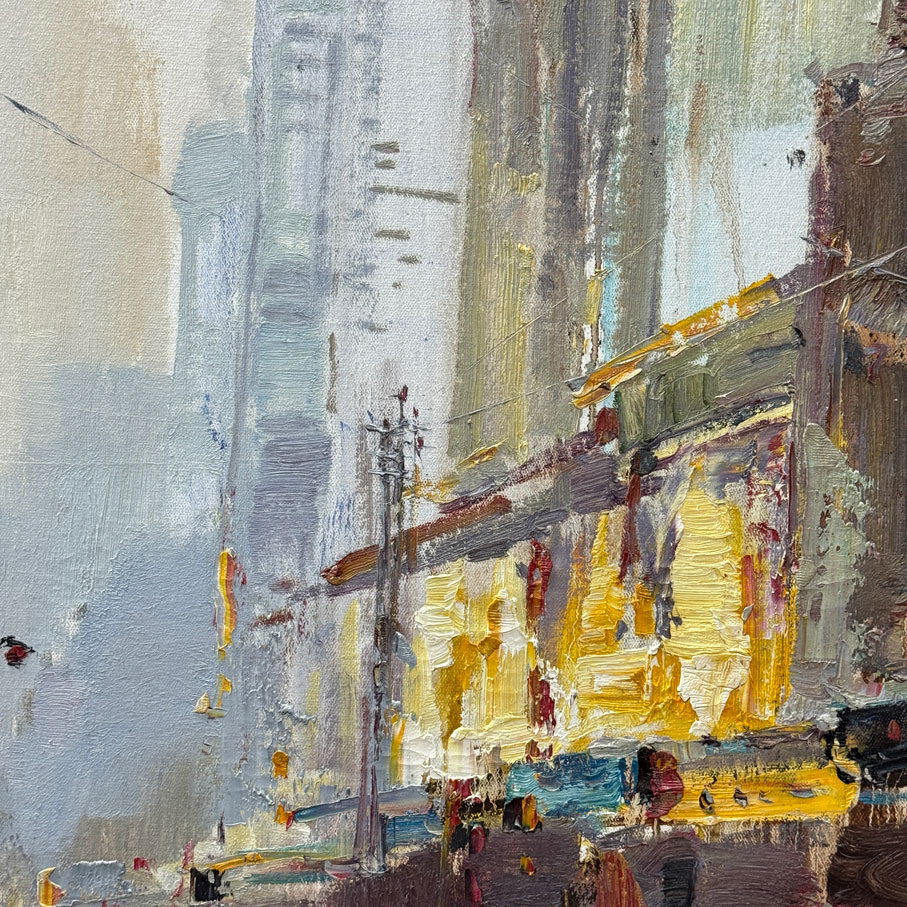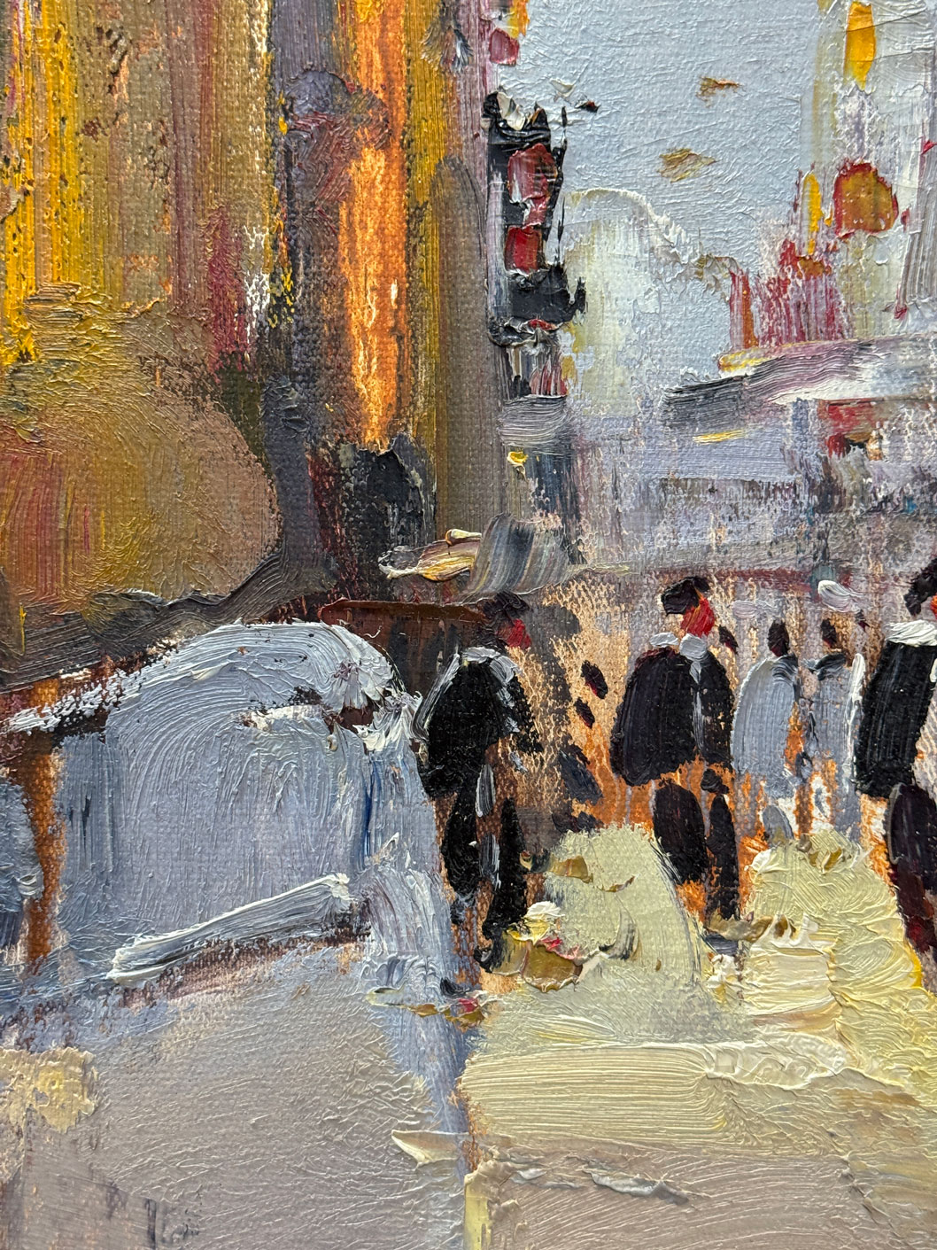 有層次堆疊的塗法,將灰色調的街與暖色調的光線結合成有質感的歐式街景。