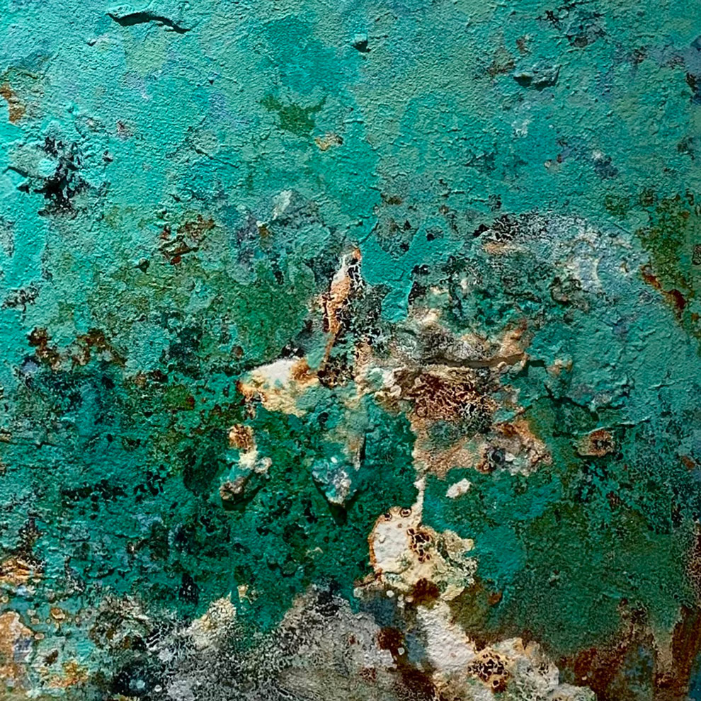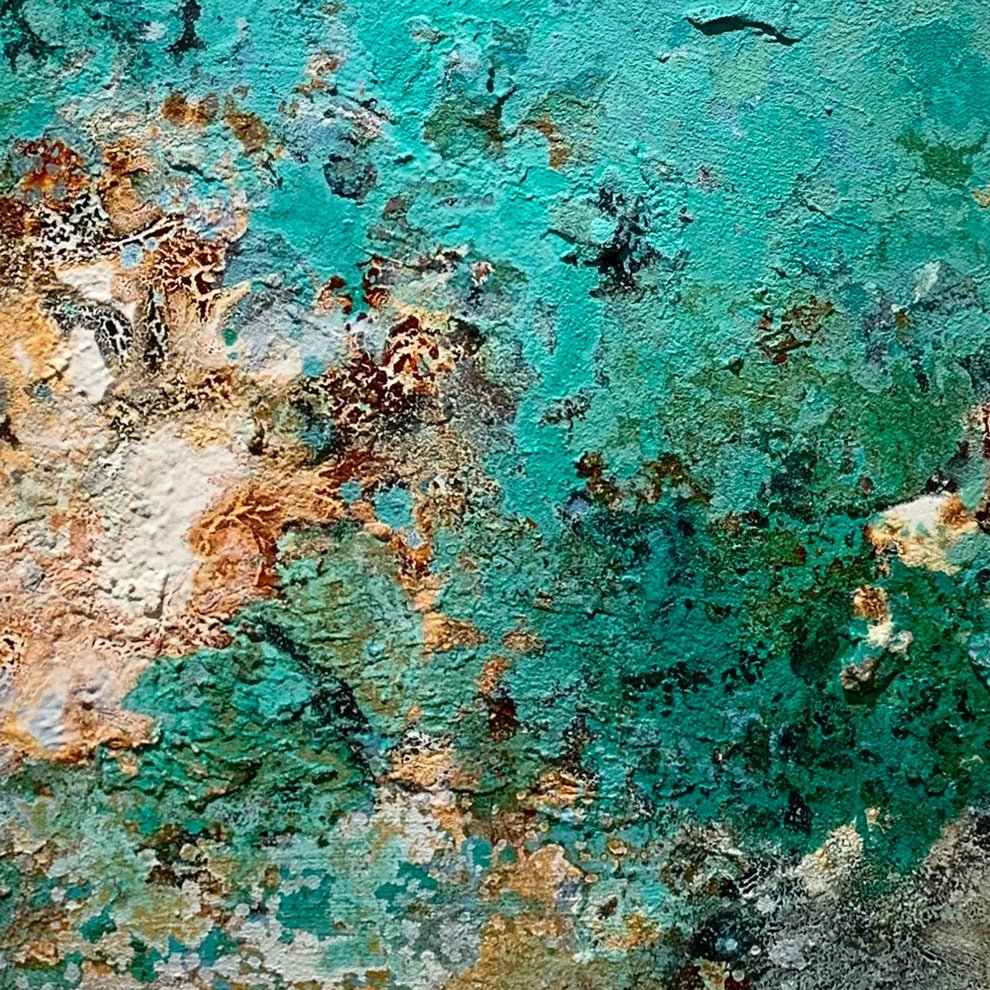 綠色與藍綠色調,讓畫面保有沉靜與流動感,