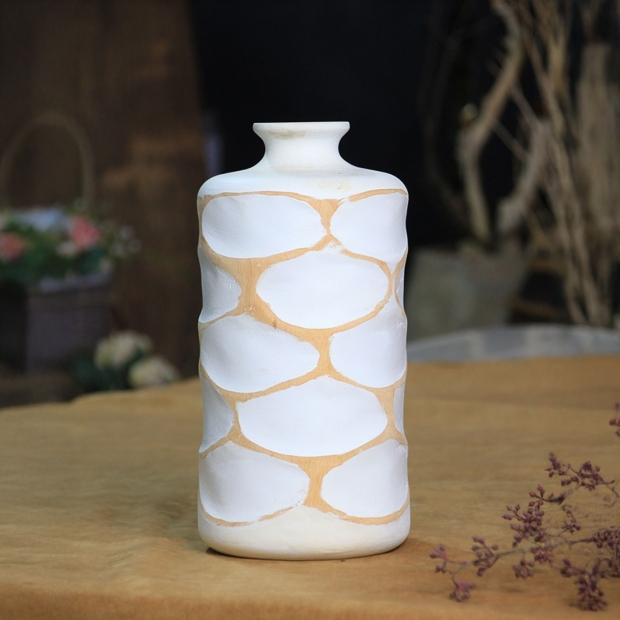 網狀芒果木白花器-y16589